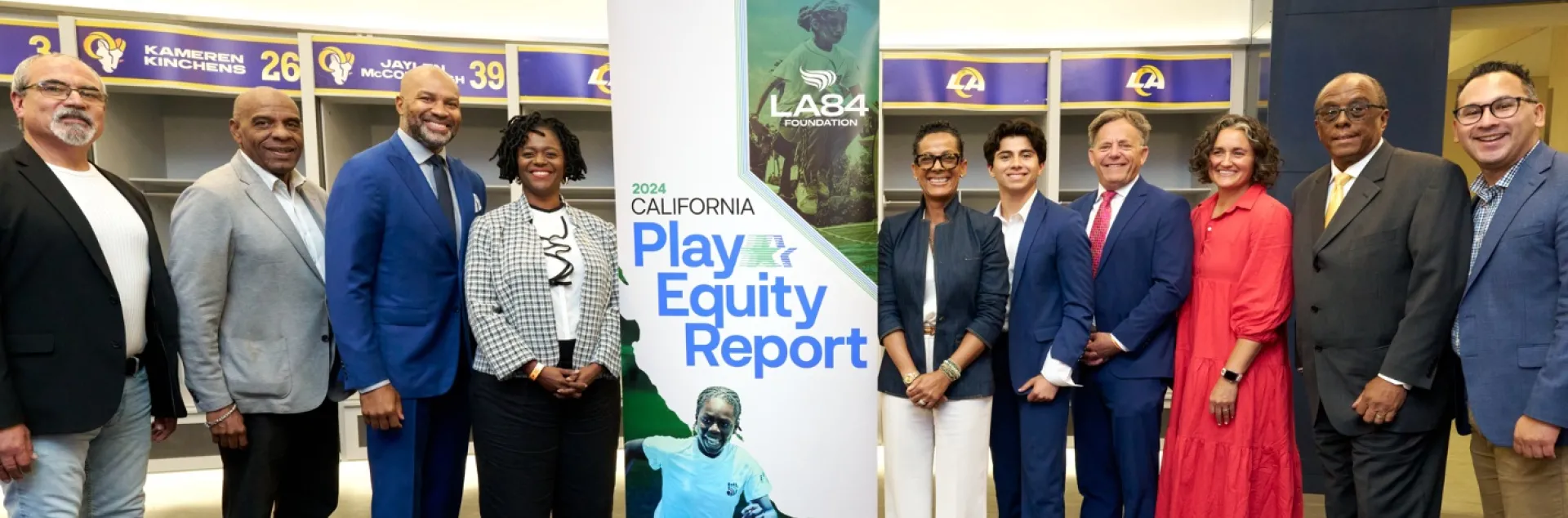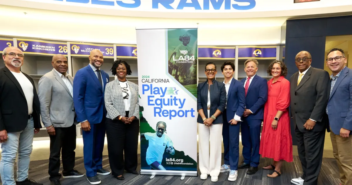 Hannah Thompson (in red dress) provided testimony in a special session of the California Senate Education Committee on physical activity in schools, hosted by the Los Angeles Rams organization at SoFi Stadium.