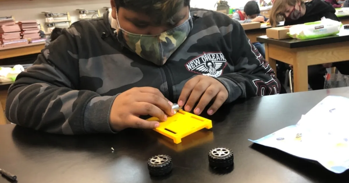 A 6th grader at Avery Middle School assembles a Mars rover. JoLynn Miller hopes the Mars project raises awareness of 4-H in their community and the variety of projects the UC ANR youth development program offers.