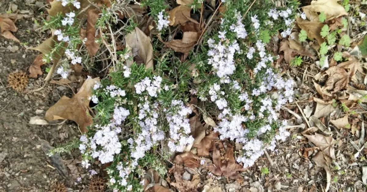 You sent a photo of a plant for us to identify. It is rosemary (Rosmarinus officinalis). While it's not native to California (it originated in the Mediterranean area), it is very well adapted to California's similar Mediterranean climate. Its flowers range in color from various shades of blue to even pink and white. Its growth habit ranges from stiff and erect, rounded, or low and creeping, depending on variety or cultivar.