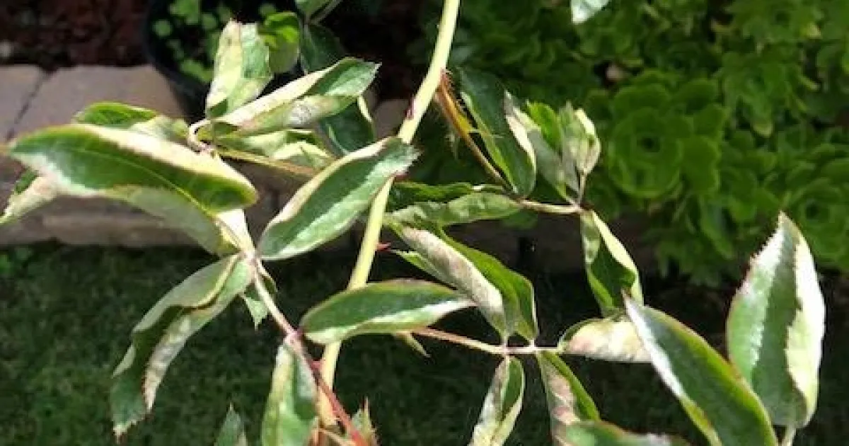 MGCC Help Desk Response: Thank you for contacting the Help Desk of the UC Master Gardener Program of Contra Costa County. Based on the photo you provided, it is likely that your rose are infected by Powdery mildew (Podosphaera pannosa). This fairly common fungi produces mycelia and spores on leaves and shoots, and sometimes on flowers. It looks like a gray (older infections) or white (newer infections) powder on both sides of the leaves, differentiating from Downy mildew, which tends to appear only on the underside of the leaves.