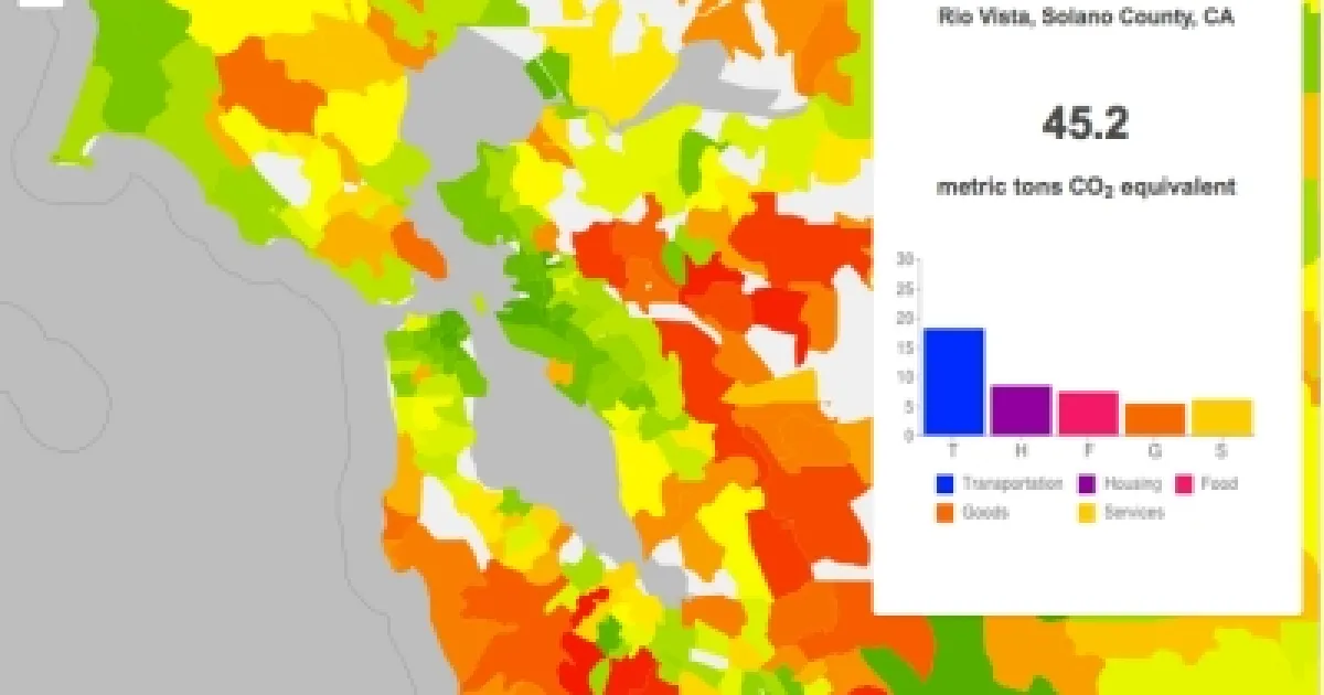 The study uses local census, weather and other data – 37 variables in total – to approximate greenhouse gas emissions resulting from the energy, transportation, food, goods and services consumed by U.S. households, so-called household carbon footprints.