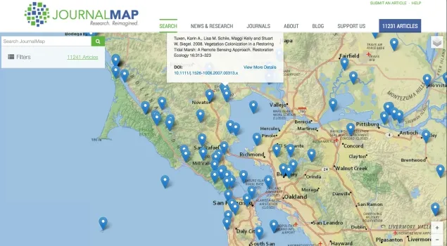 Check it out: another way to search for research. JournalMap is a scientific literature search engine that empowers you to find relevant research based on location and biophysical attributes combined with traditional keyword searches. It works ok, I found one of my papers, not others. But the interface it quick and intuitive.