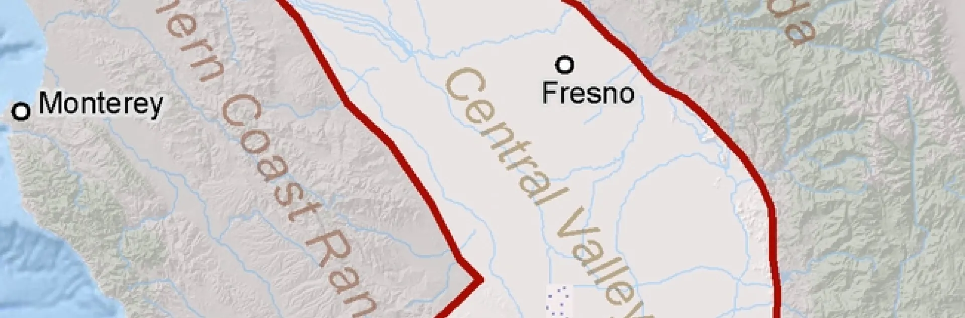 The sample map below is one of 11 maps created for this project. It shows the Central Valley Bioregion and its surrounding area.