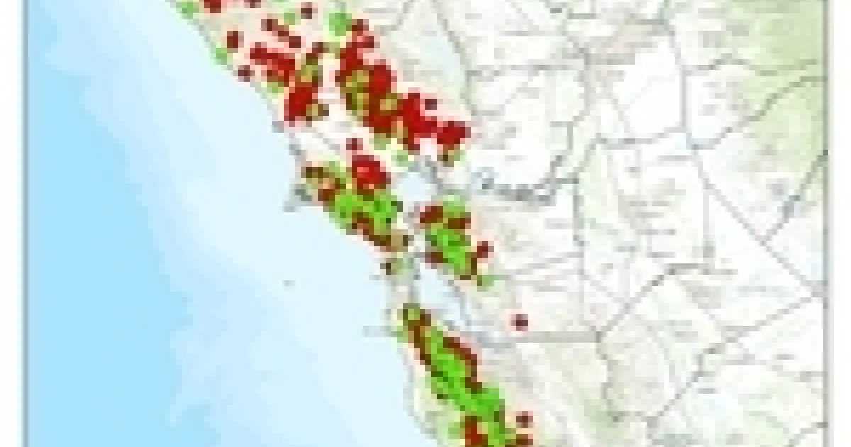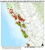 Click on the image left to view a close-up of the new confirmed SOD data (in green) from SOD Blitz and UC Davis.