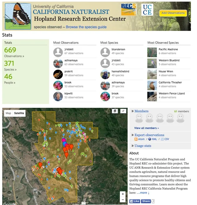 This bioblitz was supported by a grant from the University of California Agriculture and Natural Resources and was organized by Kip Will, Maggi Kelly, George Roderick, Rosemary Gillespie. IGIS's Shane Feirer helped set up the IT infrastructure for the day.