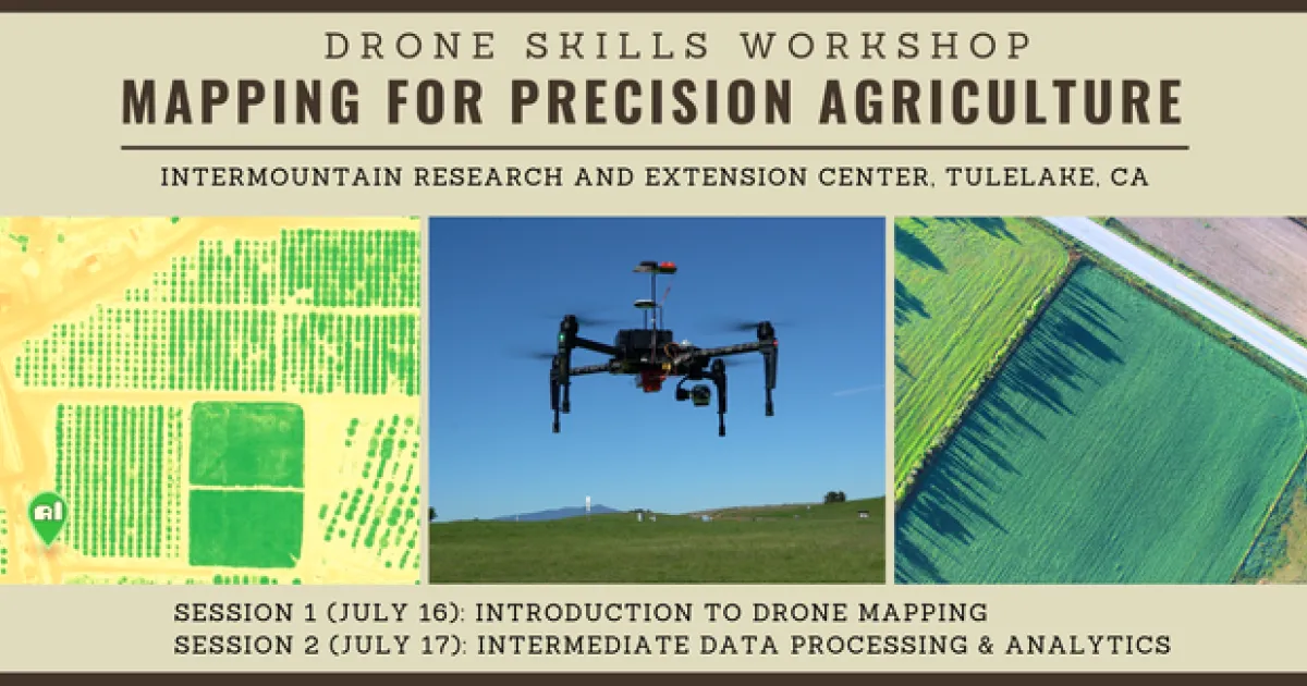 Greg Crutsinger is excited to announce two 1-day workshops on agricultural mapping with drones, July 16th & 17th at the Intermountain Research and Extension Center (IREC) in Tulelake, California.