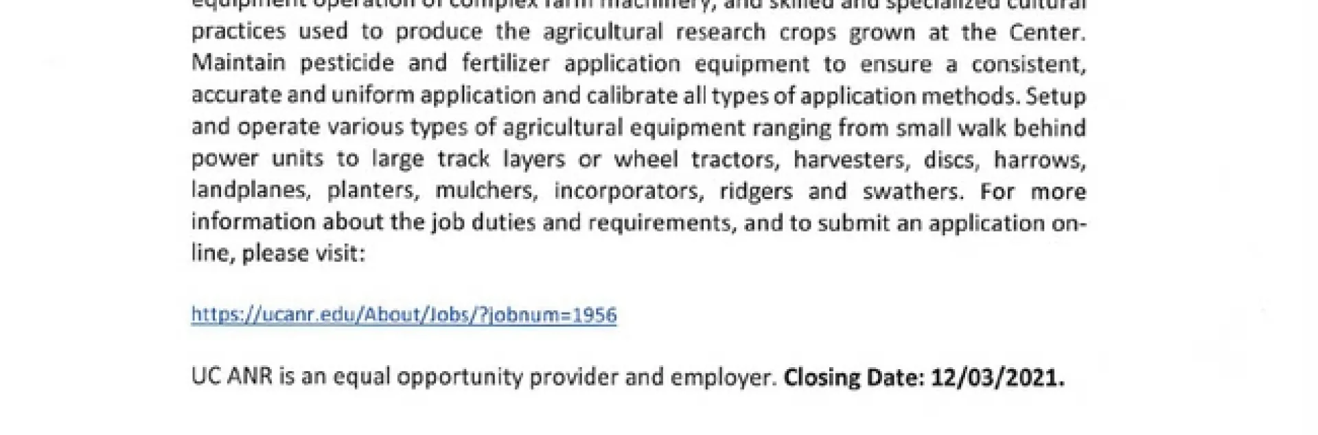 IREC is hiring a Sr. Farm Machinery Mechanic