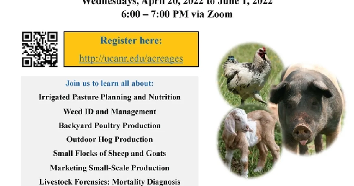 Do you have a few acres and either already have or want to add livestock? If so join UCCE for our seven-part Managing Land and Livestock on Small Acreage webinar series.