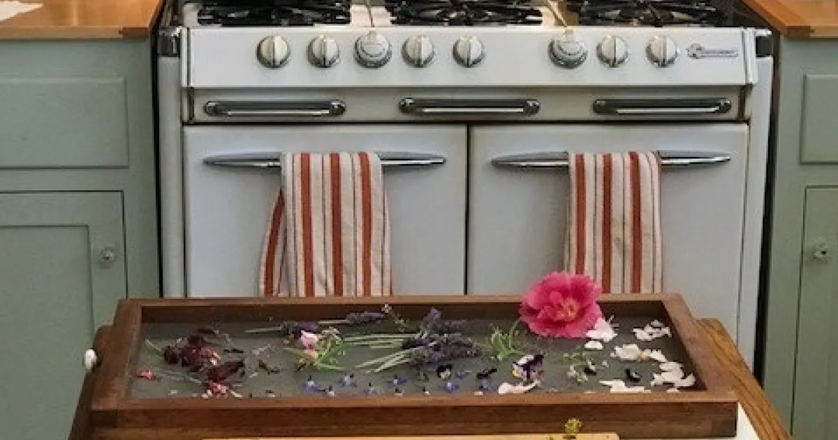 Walk into my kitchen and you'll smell the pungent scents of savory edible flowers like dill, fennel, society garlic, nasturtium, sage, rosemary, and oregano drying on a tray screen. Beside them sits an array of sweet edible flowers; violas, dianthus, roses, the brilliant blue stars of borage, lemon verbena, hollyhocks, lavender, and roselle, a hibiscus that makes glorious, red tea.