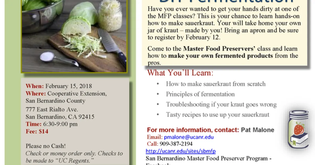 Make sure you attend this class for really good, easy-to-do, home-fermented sauerkraut.