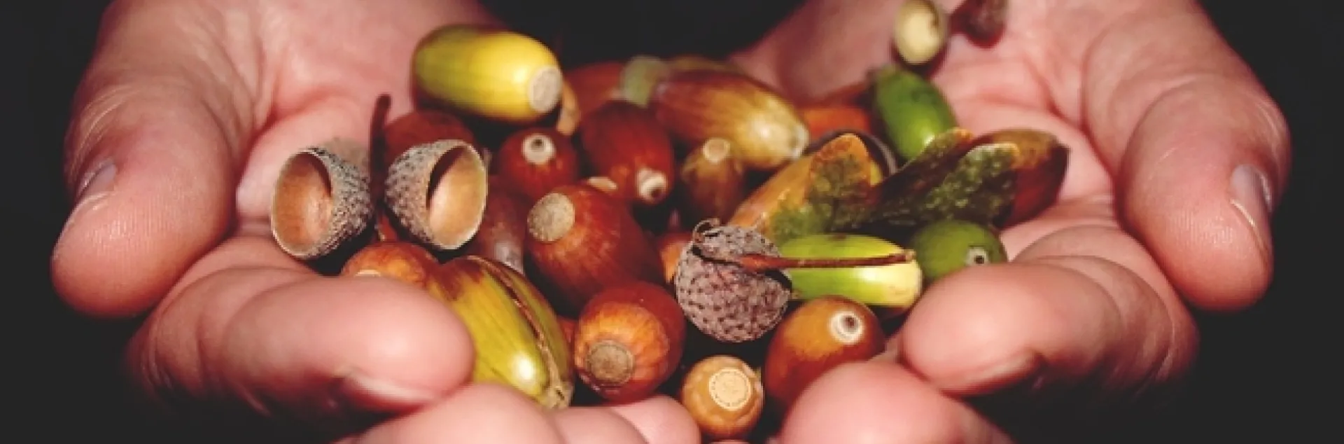 We no longer gather acorns for food, but employees of Napa County's Resource Conservation District do gather acorns in the fall to re-oak the valley. They collect, plant, and distribute acorns from local native oak trees in an effort to replace lost oaks.