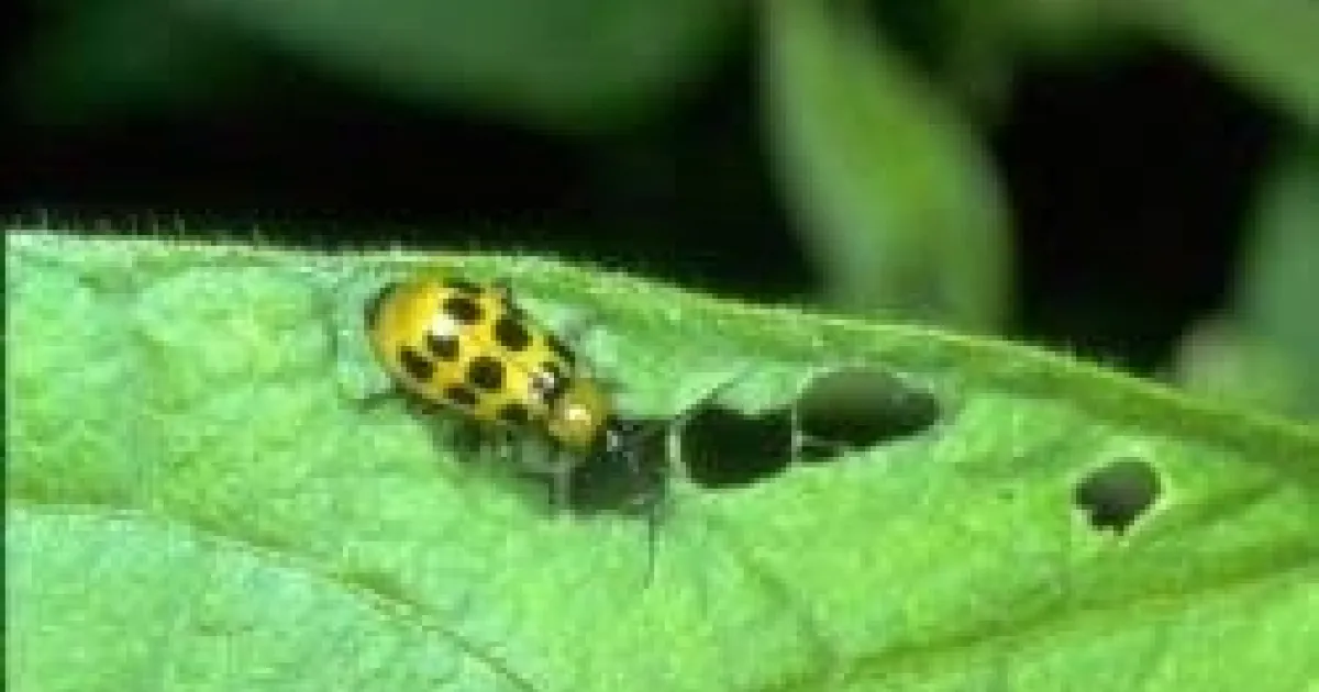 If you are finding large holes in the foliage of your beans, cucumber, melons, squash, corn, potatoes, tomatoes, eggplant, beans, peas, beets, asparagus, cabbage, lettuce and other vegetables, look for these little pests on top of and under leaves.