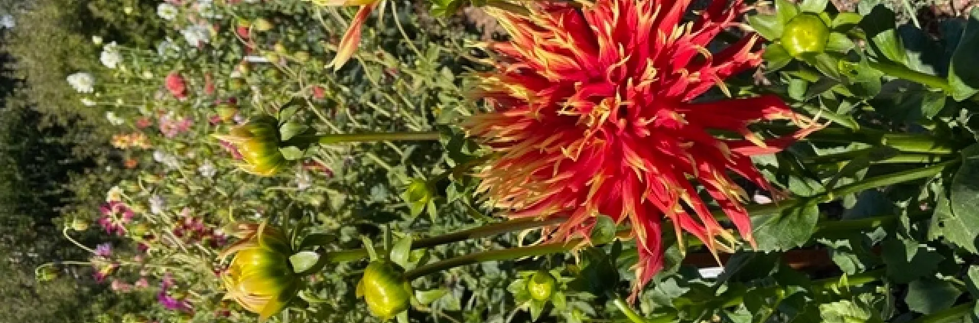 Adjacent to the Rose Garden and after the Knot Garden is a marvelous collection of dahlias (my second favorite flower). They were so beautifully colored and striking. Among the standouts: ‘Heather Marie,' ‘Clyde's Choice,' ‘Pearson's Colleen,' ‘Show ‘N' Tell' (perhaps my favorite) and ‘Crichton Honey.'