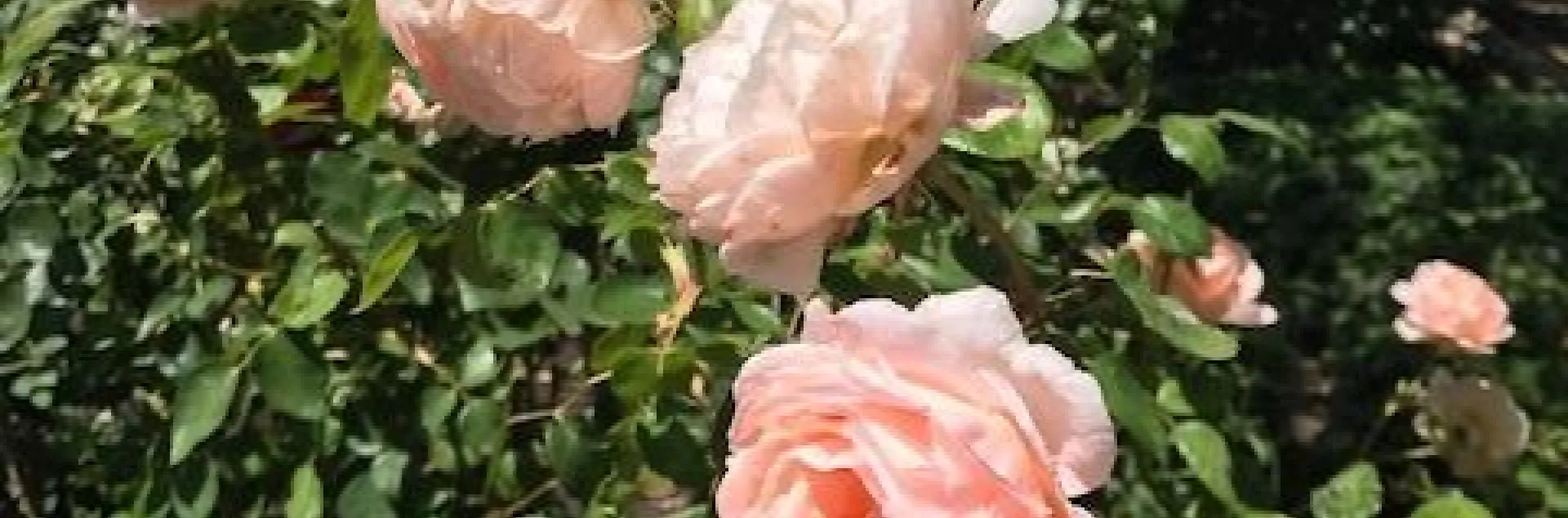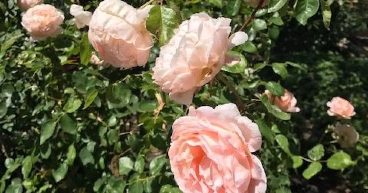 The garden features David Austin roses—a nod to Bates's English heritage—as well as a mix of Mediterranean and California native plants. In late spring, visitors see a spectacular display of Matilija poppies (Romneya coulteri) on the office building's sunny south side. I have had no luck with that show-stopping native, but the poppies are obviously happy there. They reseed and are prolific in spring.
