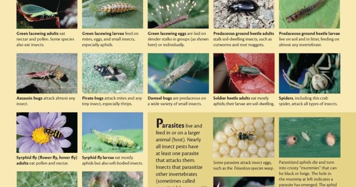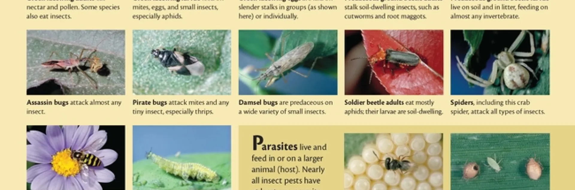 One example of biological control is the use of natural enemies. In addition to ladybugs, beneficial insects include soldier beetles, lacewings, minute pirate bugs and assassin bugs.