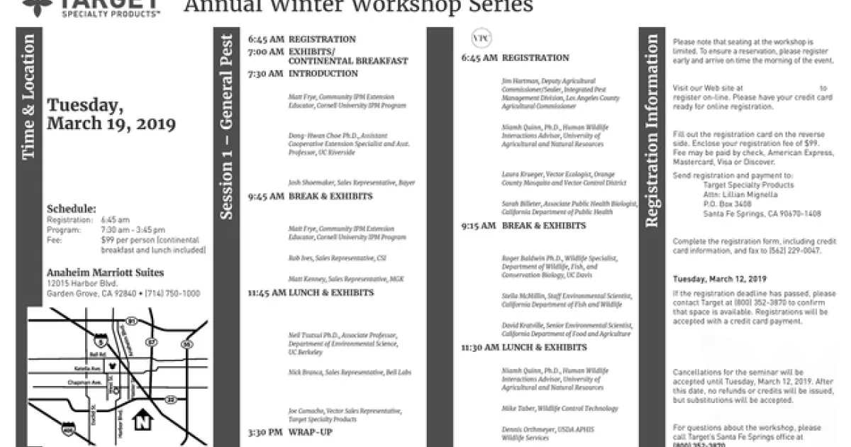 Both structural and DPR continuing education units are available and Vector CEUs have been approved for some venues. For more information on these workshops, hosted in Sacramento, Oxnard, Anaheim and Visalia this year, please check out www.vpconference.org.