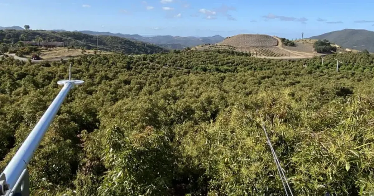 “Quizá a nadie le guste investigar en una pendiente de casi el 45% y levantar torres de 9 metros de altura para recoger datos de sensores por encima del dosel”, expresó Montazar, “Pero si se encuentra en un terreno plano viendo a almendros o pistachos, todos están felices de llevar a cabo una investigación allí”.