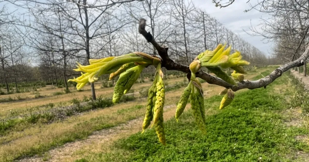 In some permanent cropping systems, climate conditions such as low winter chill may affect the overlap of the female and male bloom, affecting crop productivity. To mitigate this risk, pistachio growers sometimes plant multiple pollinizer varieties in orchards.  In Tulare County pecan growers rely on two varieties, ‘Western' and ‘Wichita,' to satisfy the reproductive needs of the crop.  One goal of the USDA NIFA-funded project is to assess the timing and overlap of the male and female bloom of co-planted varieties over years characterized by different climate conditions. Researchers across the United States are utilizing standardized techniques to assess bud break, shoot development, and bloom on many cultivars to provide phenotypic data that can be utilized by geneticists striving to breed climate resilience in pecan. Additionally, researchers are quantifying damage cause by pecan leaf scorch, a disease caused by a bacterial plant pathogen. The disease has been detected in California; however, it does not appear to be as severe in California orchards as in other regions of the United States.