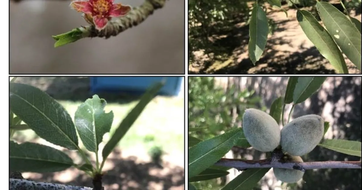 Evaluation of flowering and fruit set on almond allows for within-season assessment of orchard productivity; however, understanding the vegetative growth dynamics of almond allows growers to consider parameters affecting productivity years into the future.  Vegetative growth of almond has two main components: vegetative shoot growth and spur production. Vegetative shoot growth provides the overall architecture of the canopy, and spur production generates the tissues that give rise to the majority of fruit in subsequent seasons.  Both vegetative shoot growth and spur production are key components to the development of an economically sustainable and productive orchard.