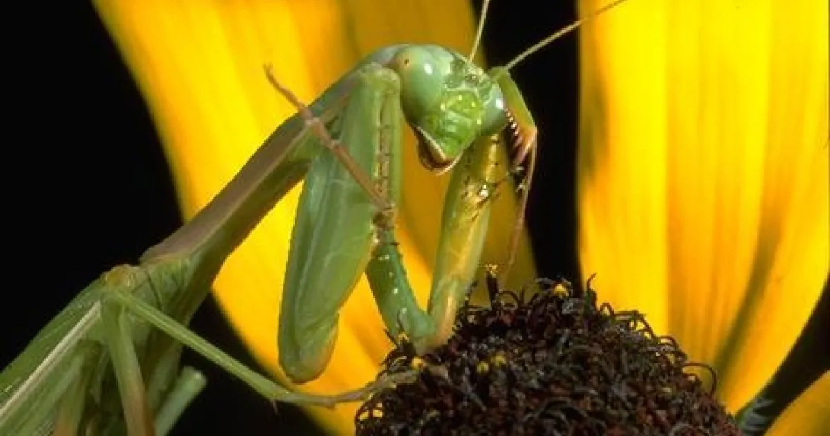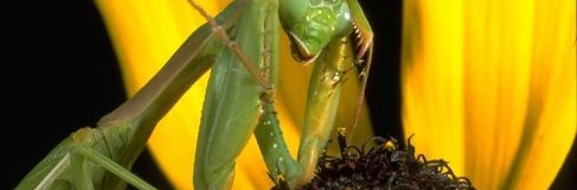 Mantids are wholly predaceous, feeding on many kinds of insects including beneficial insects and even other mantids. They often wait for prey at flowers where they capture nectar- and pollen-feeding insects. Mantids grasp their prey with spined front legs and hold them while they eat. As mantids consume both pests and beneficials, they are difficult to use reliably for biological control.