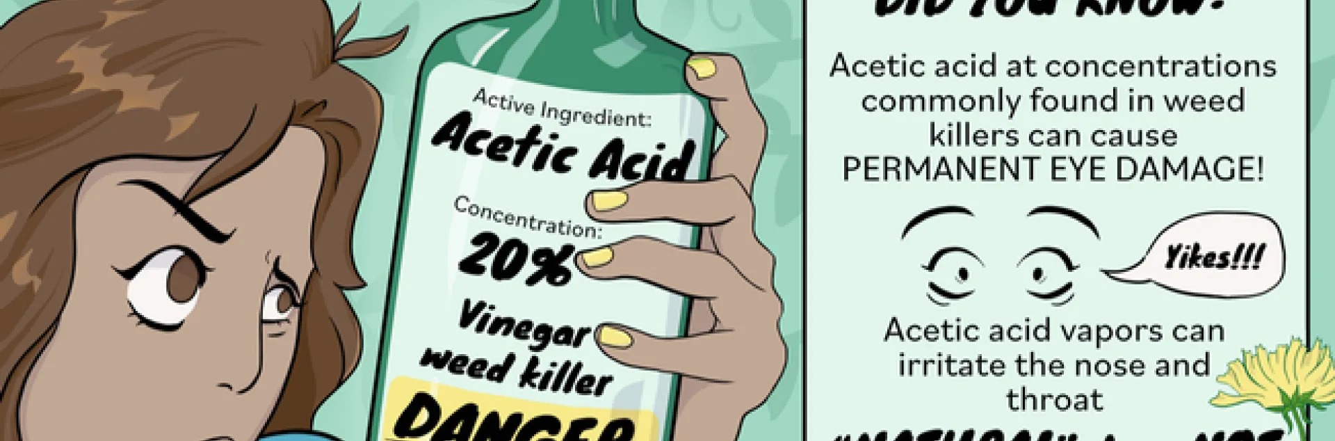 Never leave any pesticide unattended around children or pets. Never leave any pesticide in an unlabeled container. "Natural" does not mean "safe!" Remember, the dose makes the poison. The higher the concentration of acetic acid, the greater the risk.