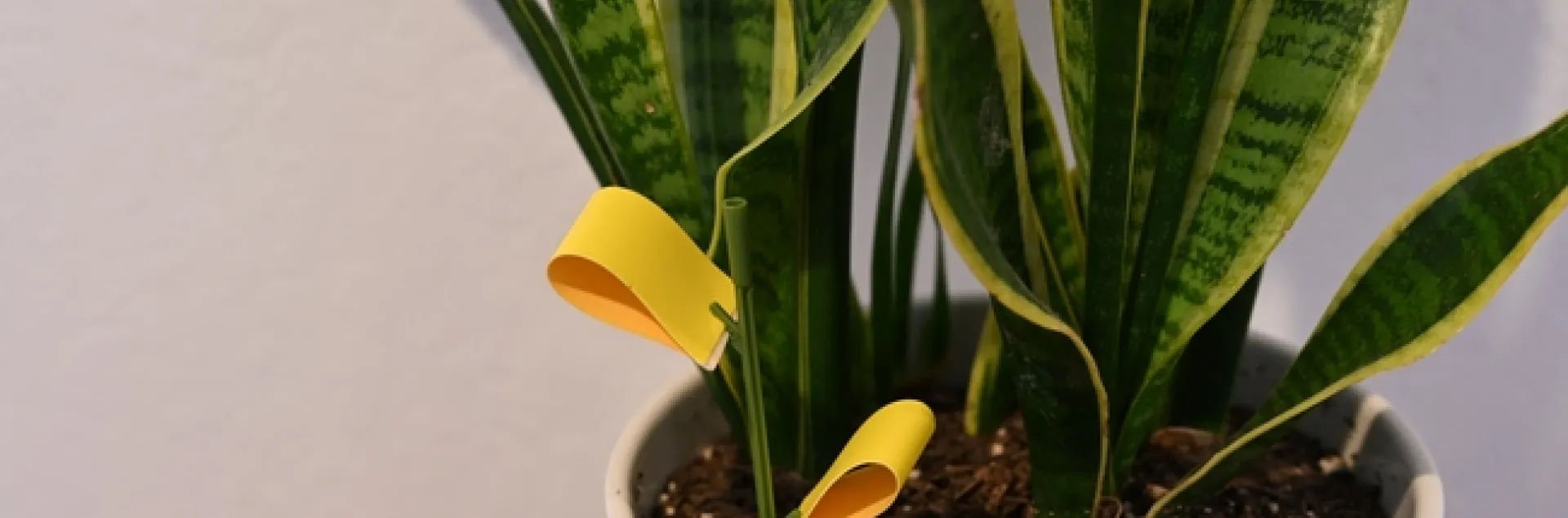 Sticky traps can be placed in pots or near plants to catch fungus gnat adults. This is also a great way to monitor for fungus gnats. Pesticides, including several biological pesticides like Bacillus thuringiensis subspecies israelensis (Bti), are available to control fungus gnats. However, the best way to control fungus gnats is by simply adjusting watering practices.