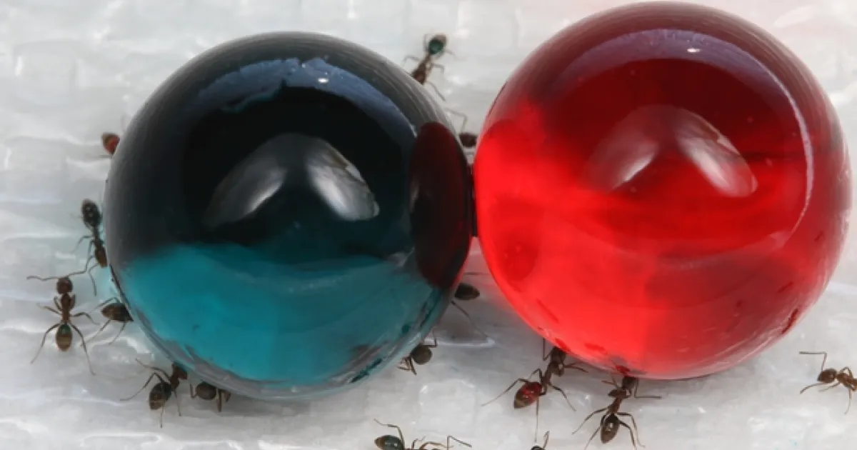 Beads of alginate hydrogel, derived from seaweed, were mass-produced using a modified shower head nozzle (view the 11-minute video at youtu.be/NVMql2xClBk or the 36-second video below). The hydrogel beads were conditioned for 24 hours in a liquid bait (25% sucrose solution with a small amount of the insecticide thiamethoxam). This amount of thiamethoxam is significantly less than the percentage found in current commercial ant bait products. The highly absorbent hydrogel acts as a controlled-release formulation that keeps the liquid bait available and palatable for an extended period. The team determined the hydrogel's properties such as water uptake and water loss characteristics, pesticide intake, and the acceptance by foraging Argentine ants. In small-scale laboratory tests, the hydrogel bait provided excellent control against all stages (e.g., workers, brood, and queens) of the Argentine ant colony within 14 days.