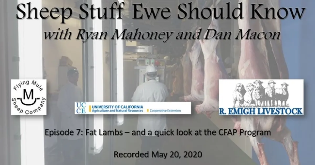 Several weeks into California's shelter-at-home order, my friend and fellow rancher Ryan Mahoney (of R. Emigh Livestock in Rio Vista) came to me with a fun idea for doing a weekly video/podcast on all things sheep. Ryan suggested that we should call our project Sheep Stuff Ewe Should Know, using a conversational format. Each week, one of us comes up with a topic and a list of questions for the other - so far, we've covered wool, feeding lambs, managing pasture, business benchmarks, risk management, and dealing with COVID-19. Our videos are available on my Ranching in the Sierra Foothills YouTube (I prefer EweTube) channel; Ryan has figured out how to turn these into podcasts, which are available on Spotify and Apple Podcast. We've had lots of fun producing them; hopefully, they're useful for other sheep producers, too!