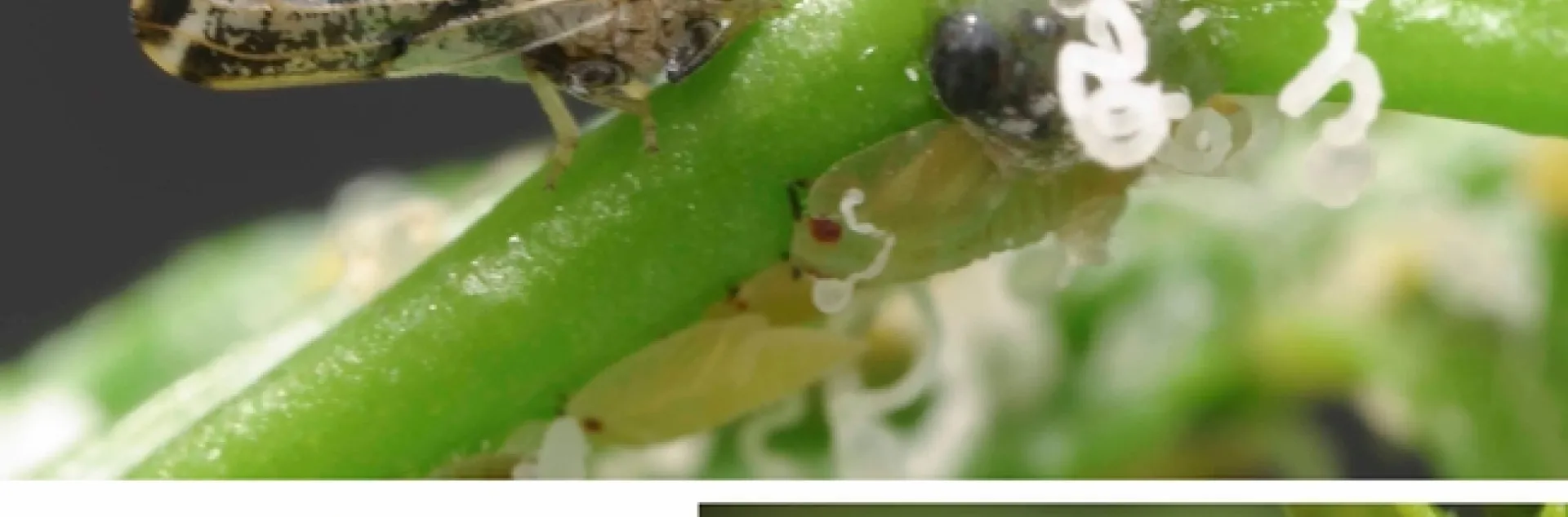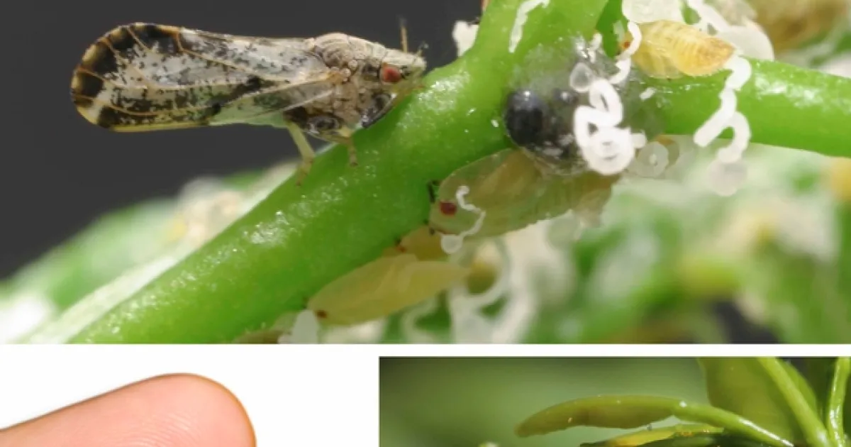ACP nymphs only feed on new citrus shoots and leaves. As they feed, a toxin is injected causing leaves to twist and curl, sometimes killing new shoots. Nymphs also produce excess sap or honeydew which promotes the growth of sooty mold. To direct the honeydew away from their bodies, they produce waxy, white tubules. The tubules are unique to the nymphs and are easily identified. Other insects such as aphids can cause these same symptoms, but they do not produce tubules nor are they a vector for the bacterium causing HLB.
