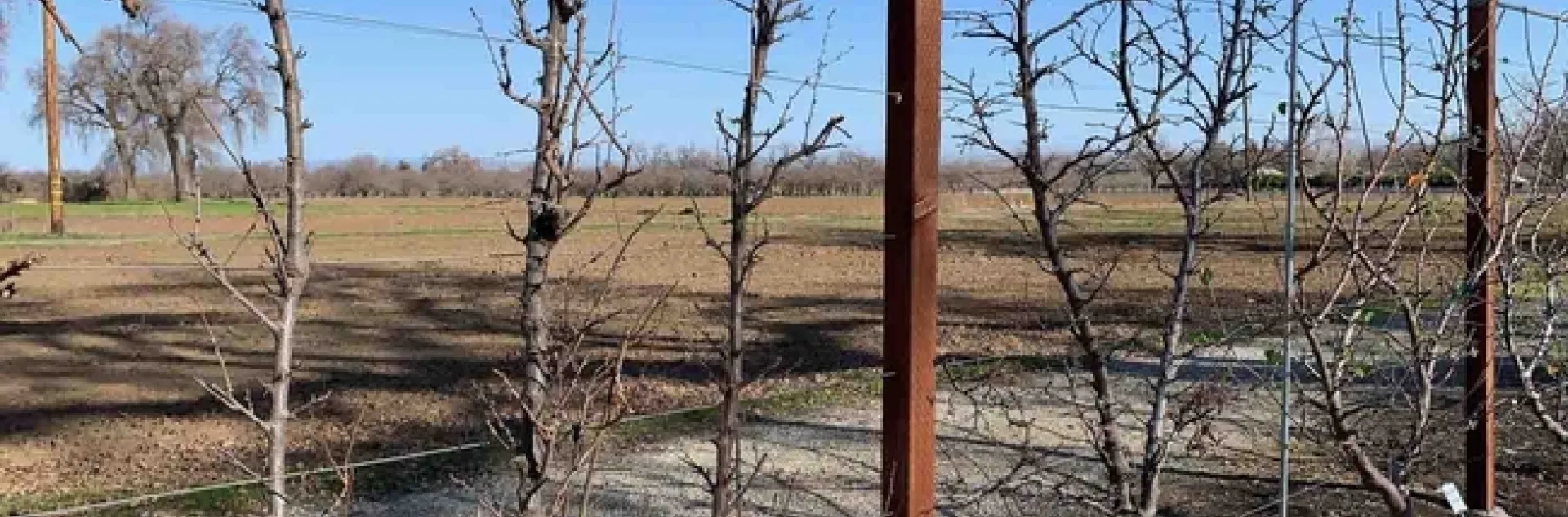 In late spring 2015, a small group of Butte County Master Gardeners proposed an Espalier Garden for the educational gardens being developed by the Master Gardeners at Patrick Ranch. They created plans to showcase fruit trees and to display different patterns of espaliering. From there, they embarked on the basic steps of espaliering: site selection, espalier structure design, tree variety selection, planting technique, espalier pattern choices, and methods of pruning and training. The trees were planted in Spring 2016.