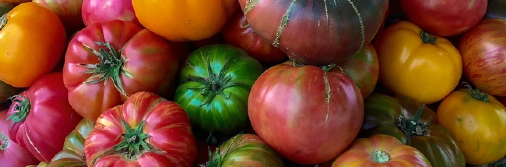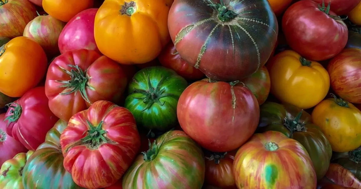 Heirloom tomatoes come in a multitude of sizes, shapes, colors, and flavors. In addition to red, they can be purple, yellow, green, orange, or pink, and they can even be striped or marbled. They also vary in shape (pear, oblong, round, oval) and size (from small grape-sized fruit to giant two-pounders). And heirlooms can have a long harvest season, producing fruit into fall if conditions are right.