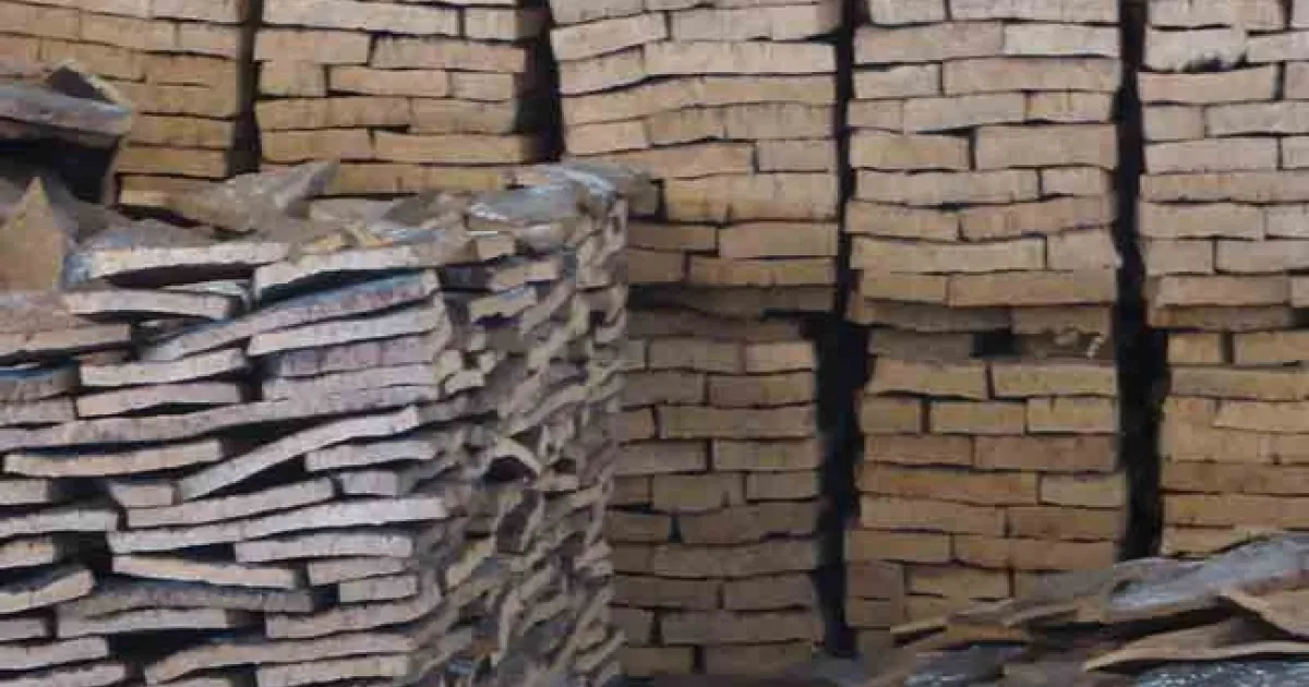 Cork sorted into piles in Alentejo, Portugal cork factory. J.C. Lawrence