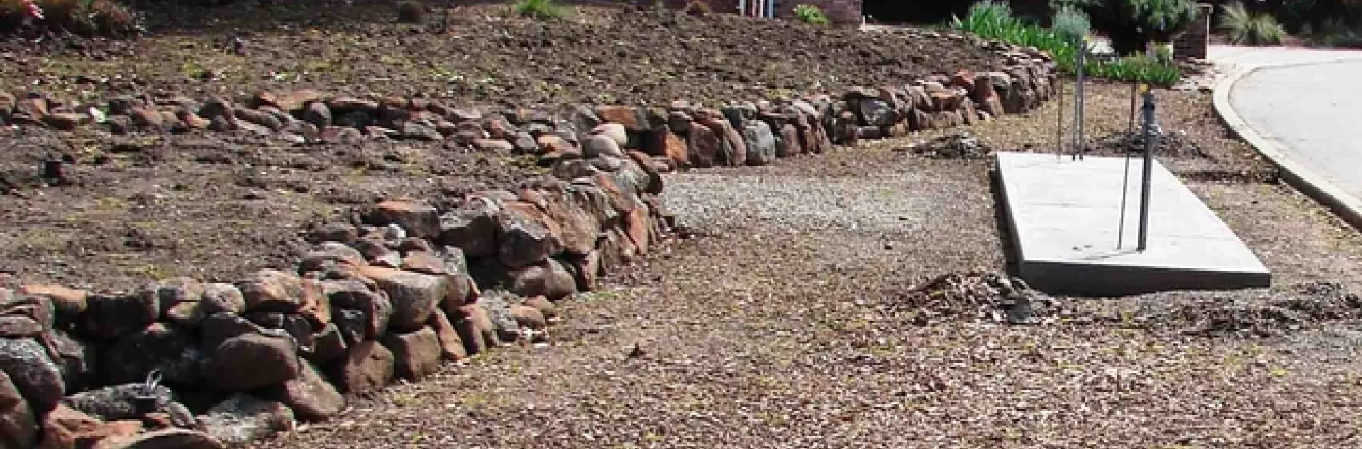 Infrastructure: Before digging any holes for plants, complete the installation of your infrastructure, including all hardscape, irrigation lines, and drainage facilities. Build berms, install focal point(s), pour concrete, place landscape rocks; all of this comes before the living elements are added. Planting beds can be outlined with rocks at the same time as planting, if the rocks are relatively small and placing them will not disturb the plants.