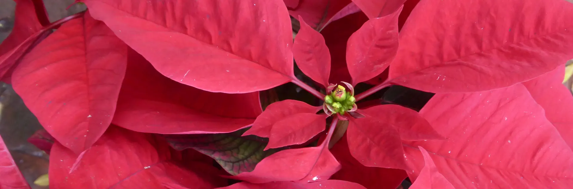 A closer look at a poinsettia reveals that the colorful parts are pigmented leaves, not flowers at all, and the actual flower is quite small (a type of flower structure called cyathium unique to the genus Euphorbia). In the wild, the brightly colored leaves (called bracts) serve the same purpose as flower petals, attracting pollinators like hummingbirds.