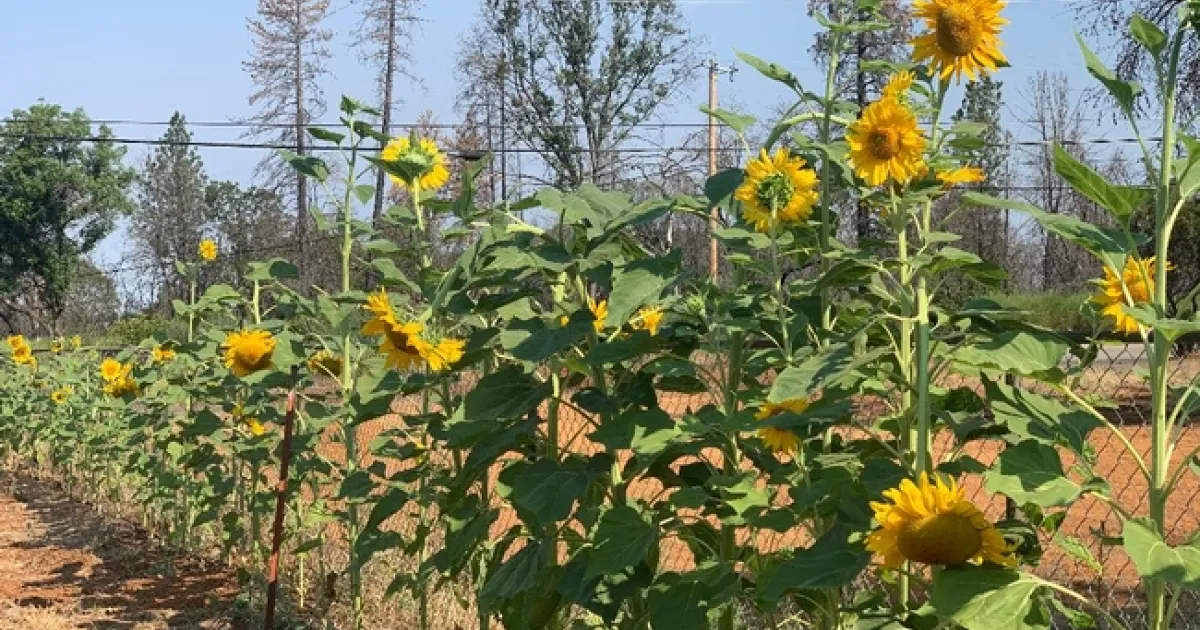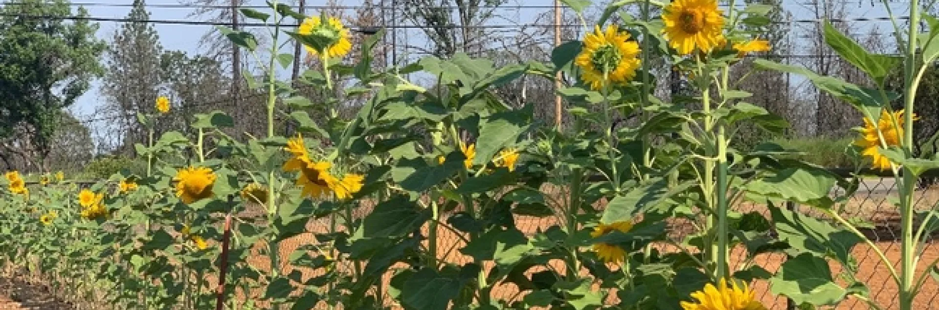 Allison's sunflowers in Paradise, Debi DurhamDriving through town, it is apparent that many gardeners continued to buy plants and garden while living in rentals. Plants are an investment, and it can be difficult to justify buying flowers and shrubs to plant in a garden that is only temporary and not one's own. This may be especially true when there are so many essential items that need to be purchased. But the need to garden is also healing. As more people move into their new homes, container plantings brought from their interim housing are lining driveways and walkways, gracing front entries and steps. The plantings vary from small trees to fairy gardens, redwoods to roses, but these “gardens on the go” are evident everywhere.