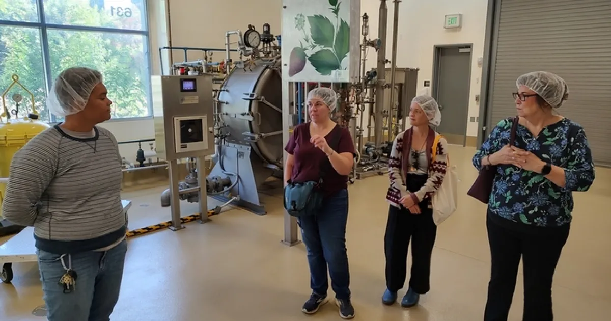 At the pilot plant, UCCE staff members learned how the 4,000-square-foot facility serves undergraduate education, academic research, university extension and food businesses. Those businesses have ranged from a five-person startup developing a poke recipe to multinational manufacturers such as Mars, Incorporated.