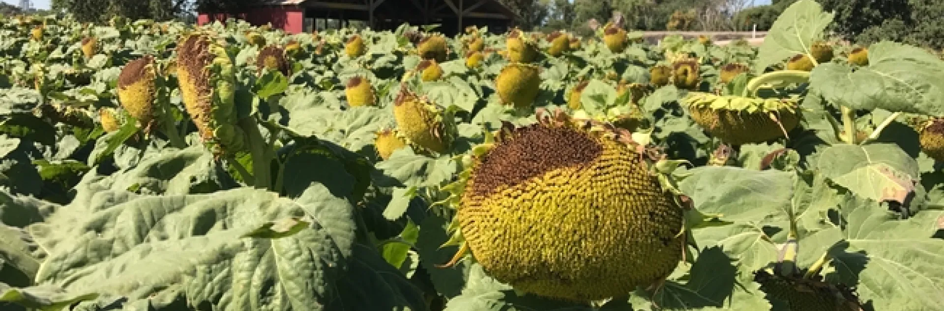 In other fields observed last summer, the female sunflowers set seed (hull present), but the seed did not fill (no kernel) due to poor pollination from a lack of honey bee activity due to excessive heat. Another malady observed was where the sunflower heads did not drop after pollination, resulting in sunburn and high seed predation by birds, which is entirely varietal and physiological. Let's hope that we have favorable growing conditions for hybrid sunflower seed production this coming year. Watch for predicted heat waves and be prepared with good soil moisture going into them, especially in the early bloom stages.
