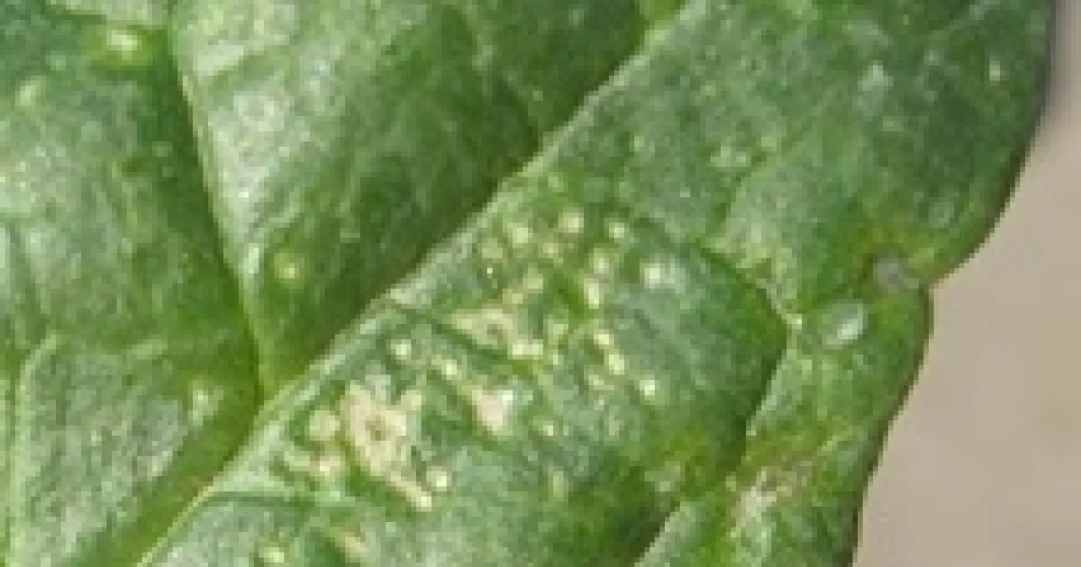 Stippling on a spinach leaf from leafminer feeding