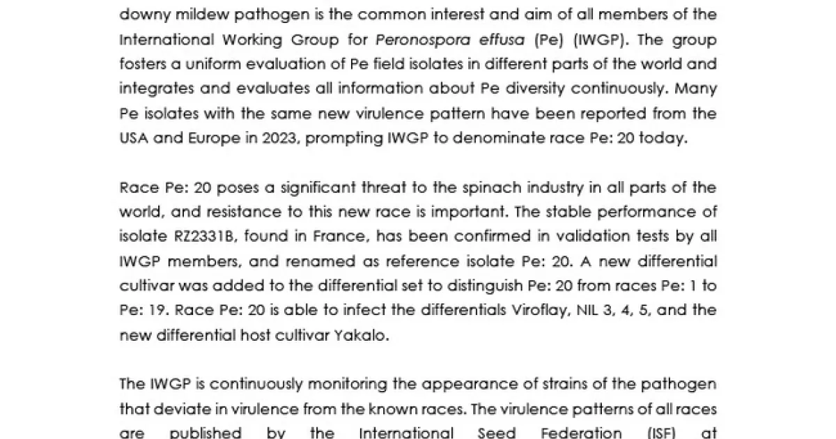Denomination of Pe: 20, a new race of downy mildew in spinach