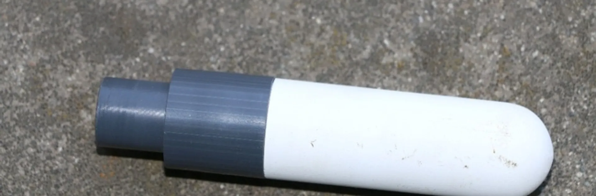 - Wrap the bottom of the PVC shaft and the top of the ceramic cup with painter's tape to prevent cement from coating the outside of the ceramic cup (Fig. 5).