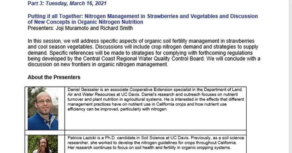 Practical Training on Nitrogen Management in Organic Production of Vegetables and Strawberries