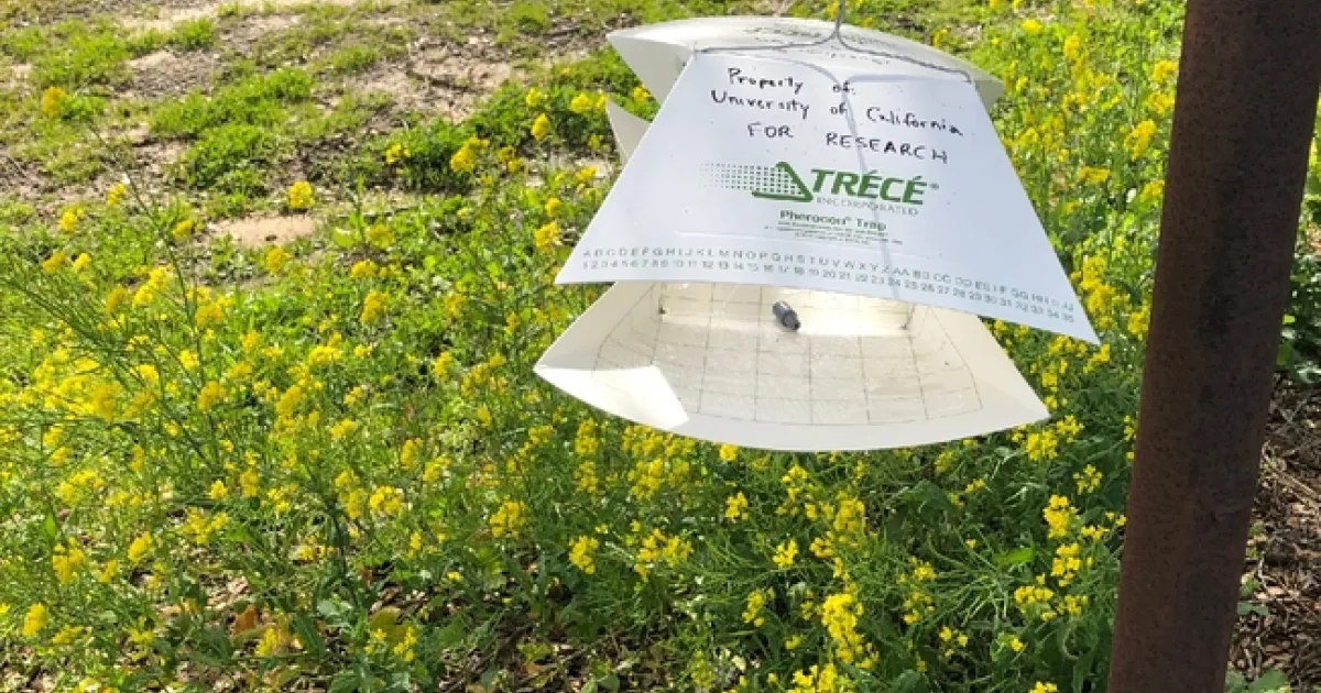 We have set up yellow sticky cards to track the overall population of winged aphids and thrips. These sticky cards are in the same locations as the pheromone traps. At this point, data for aphids and thrips is not broken down at the species level.