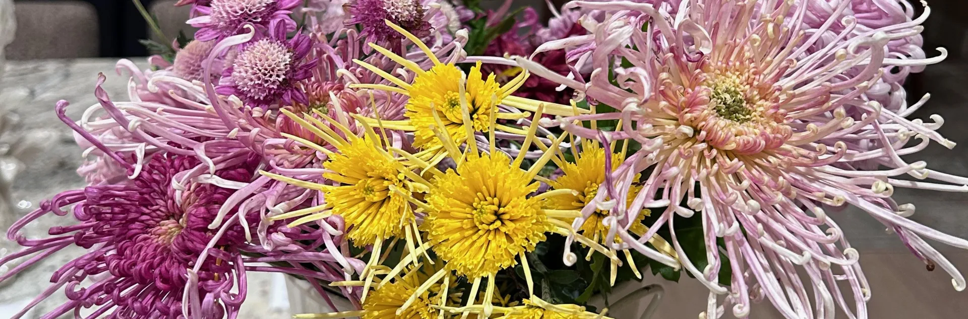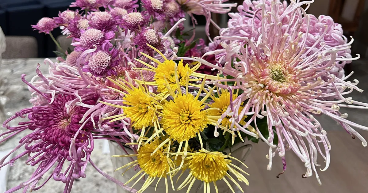 American cut flower growers have recently discovered heirloom mums. They are recognizing their unique beauty and suitability for cut flower production, which gives them three more months of flower production. The flowers bloom when other flowers are finished, have a long vase life, come in spectacular forms, and a variety of colors. Most of the long-stem chrysanthemums sold at supermarkets and florists are imported from South America, mostly Colombia.