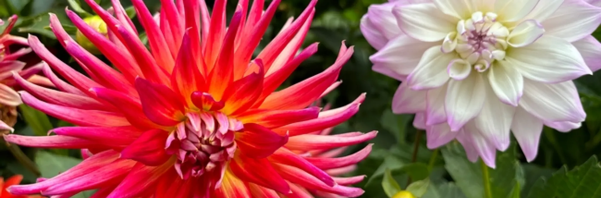 Earlier last month, when it was in the triple digits, I was enjoying a few days' reprieve in Mendocino. While there are many things to recommend this coastal town—charming architecture, stunning ocean views, very cool bookshop complete with cat--one of the highlights is the Mendocino Coast Botanical Gardens. Located a few short miles north of the town, it doesn't look like much from Highway 1, but once through the entrance, you enter another world. This sensation is particularly true if you are coming from points east where the summer heat has put a damper on your ornamentals; in these gardens, so much is in bloom, it's like springtime has never ended. The Gardens boast 47 acres of cultivated and natural spaces with well-marked trails that lead to the bluffs overlooking the ocean. There is a great variety of plant life here, but this time of year, one of the real stunners is the dahlias. The Dahlia Garden has 150 varieties and over 625 plants making for a breathtaking display. The flowers bloom from June to October, but their peak bloom time is August and September.