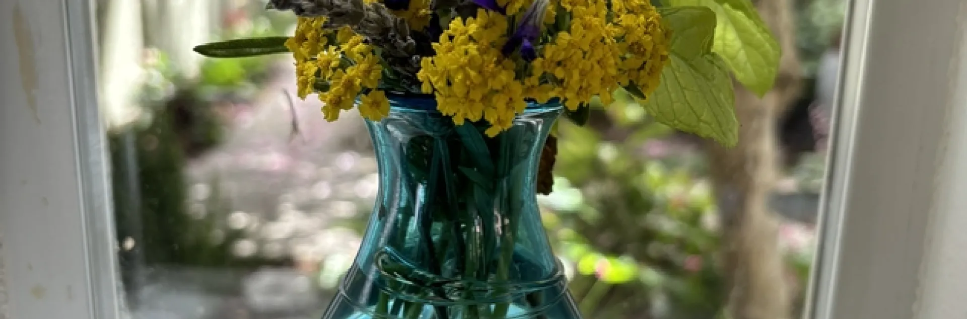 I also find it less daunting to fill a small vase, and I'm more likely to cut the flowers in my garden knowing I won't be decimating an entire patch to fill a large vessel. One of my favorite flowers to snip is tickseed (Coreopsis). It blooms profusely, so there are always plenty for my vases as well as for the landscape. Another favorite is pincushion flower (Scabiosa). I find the pale purple-blue color goes with everything. Yarrow (Achillea) is wonderful and long-lasting, but since mine are newly planted this year and still small, I hesitate to cut the few blooms I have, although I couldn't resist the yellow of my ‘Little Moonshine.' I was surprised that impatiens and begonias make good choices for a tiny bouquet. When snipping off some leggy stems of each, I decided to put them in a vase and was pleased that they were long-lasting and had the added bonus of putting out roots--beautification and propagation at the same time.