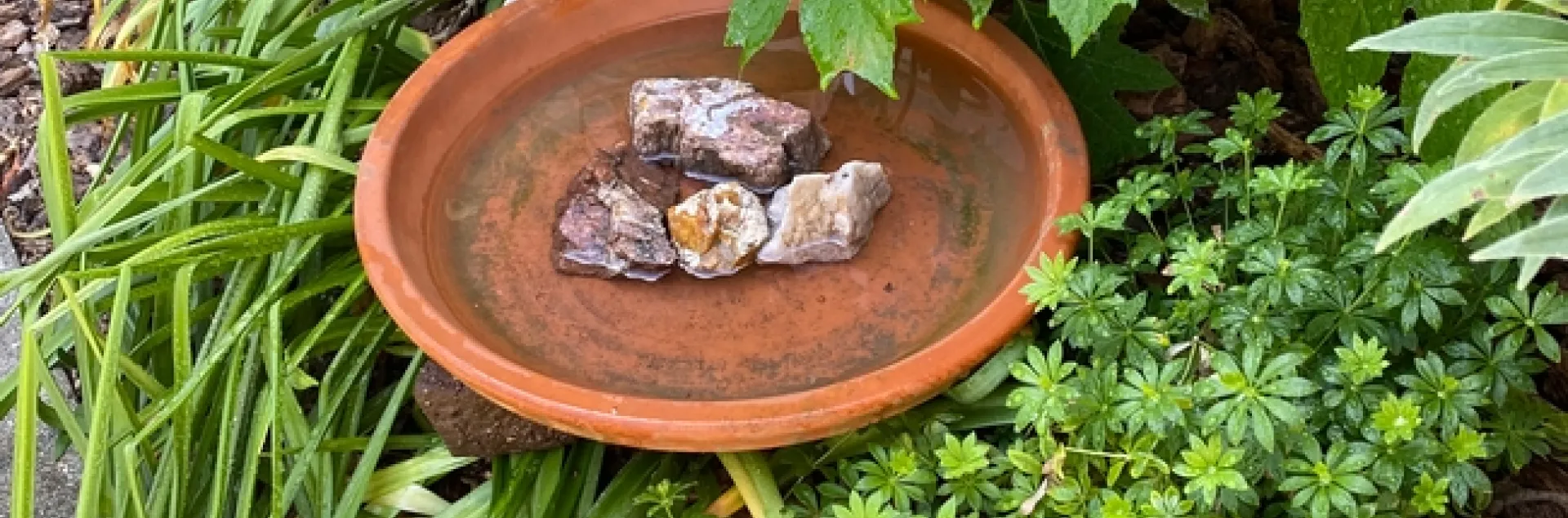 1) A very simple arrangement that will provide for both bees and birds is a plant drip tray. Take a drip tray and place some stones in it, place it in a shaded area.