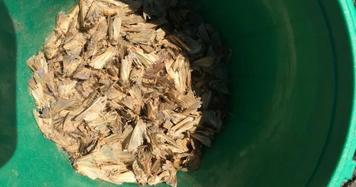 Figure 1. Pheromone bucket trap showing armyworm moths.