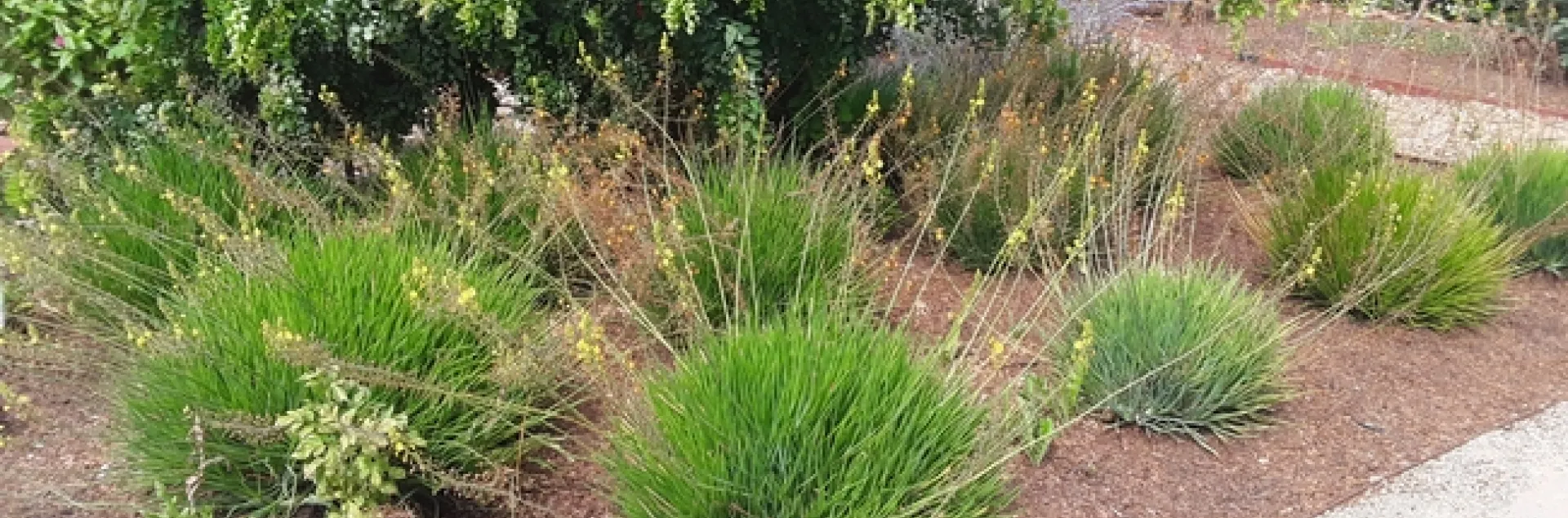 The leaves of the cape balsam are thick and fleshy, well adapted to store water. There are two colors of cape balsam flowers: yellow and orange. The plant cutting that I took on that fateful day was the orange variety of bulbine. The orange has longer thinner leaves than the yellow variety that look more grass like and tend to stay in a globular shape with the flowers growing throughout the globe. The yellow has thicker, fleshier leaves that grow in clumps and the flowers tend to originate around the circumference of this irregular plant mass. Both types add great interest in the garden with their 3+ foot wide spreading green shapes, the interesting succulent-like leaves and the 12” to 15” thin stalks displaying small orange or yellow blossoms on the ends. Needing little water once established, these evergreen native perennials from South Africa are hardy down to 25 degrees F and can take multiple hardships in stride while still providing volumes of pollinator friendly blooms. Enjoying full sun but doing quite nicely, thank you, in mostly shade, the bulbine blooms from early spring through late fall and only requires removal of spent flower stalks to neaten their appearance. The flowers also work well in flower arrangements.