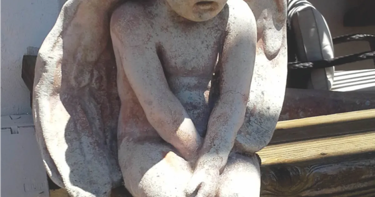 Now that I've written all this down, I'm a little embarrassed. Maybe my husband won't notice that I just brought home a geranium plant that someone had thrown, pot and all, in the gutter alongside the sidewalk. I'll make sure to water it once I have repotted the poor little thing in one of those saved terracotta pots. Hmm, maybe I'll move that craft fair angel to another location so that the rescued geranium can sit on the deck railing ...