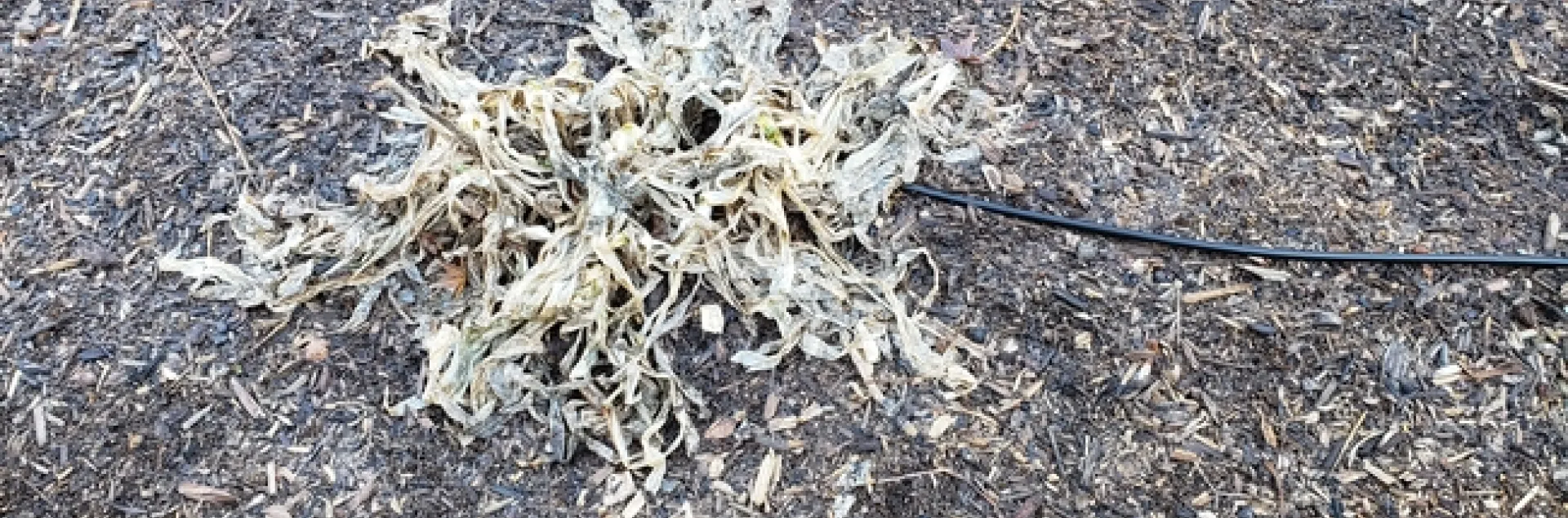 If a frost warning is missed, what's a gardener to do? Wait. Wait. Wait. Frost damaged plants often display softened translucent leaves as well as blackened and/or brown foliage and stems. This is a result of the cold air actually freezing the cells in the leaves of the plants. As the liquid expands as it freezes these cell walls will actually burst releasing the liquid when it thaws. The last frost date for our area is around April 15th. Wait until the weather warms before cutting away any frost damaged foliage. Frost damaged leaves and branches actually help protect the new spring plant growth from further frost damage. After the last frost, wait at least a month before removing dead foliage to give the plant a chance to come back.